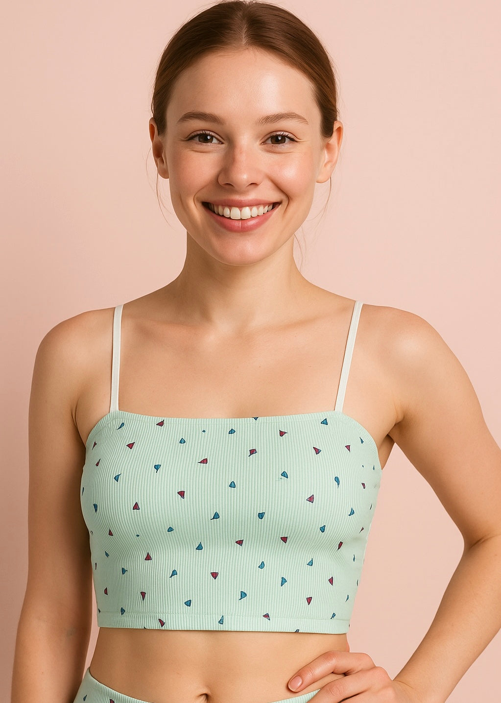 Stay comfy and cute all day with our Spaghetti Strap Printed Crop Camisole. Designed with soft, breathable stretch fabric, this crop top gives you a snug yet flexible fit. Featuring playful all-over prints and thin adjustable straps, it’s perfect for lounging, layering, or casual outings. Pair it with shorts, joggers, or your favorite pyjama set for an effortlessly fun look.